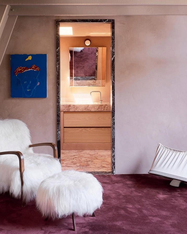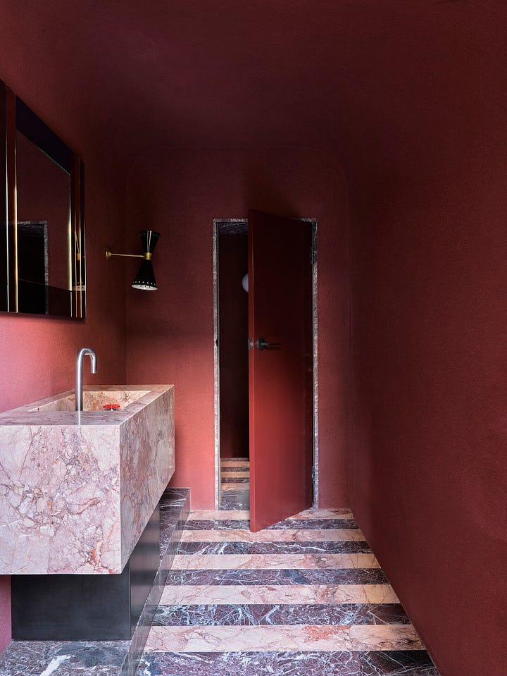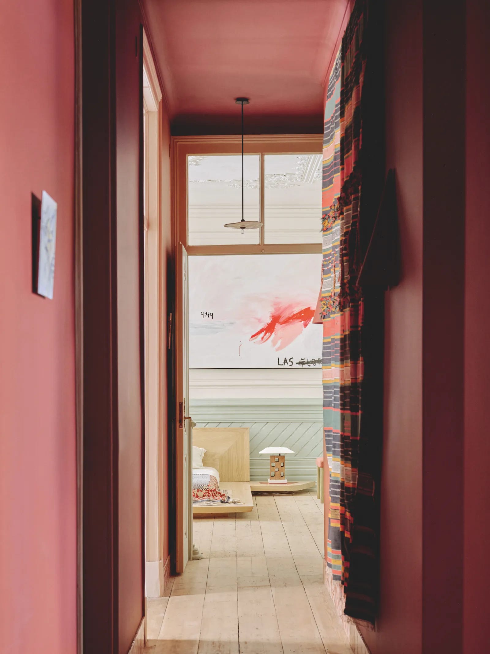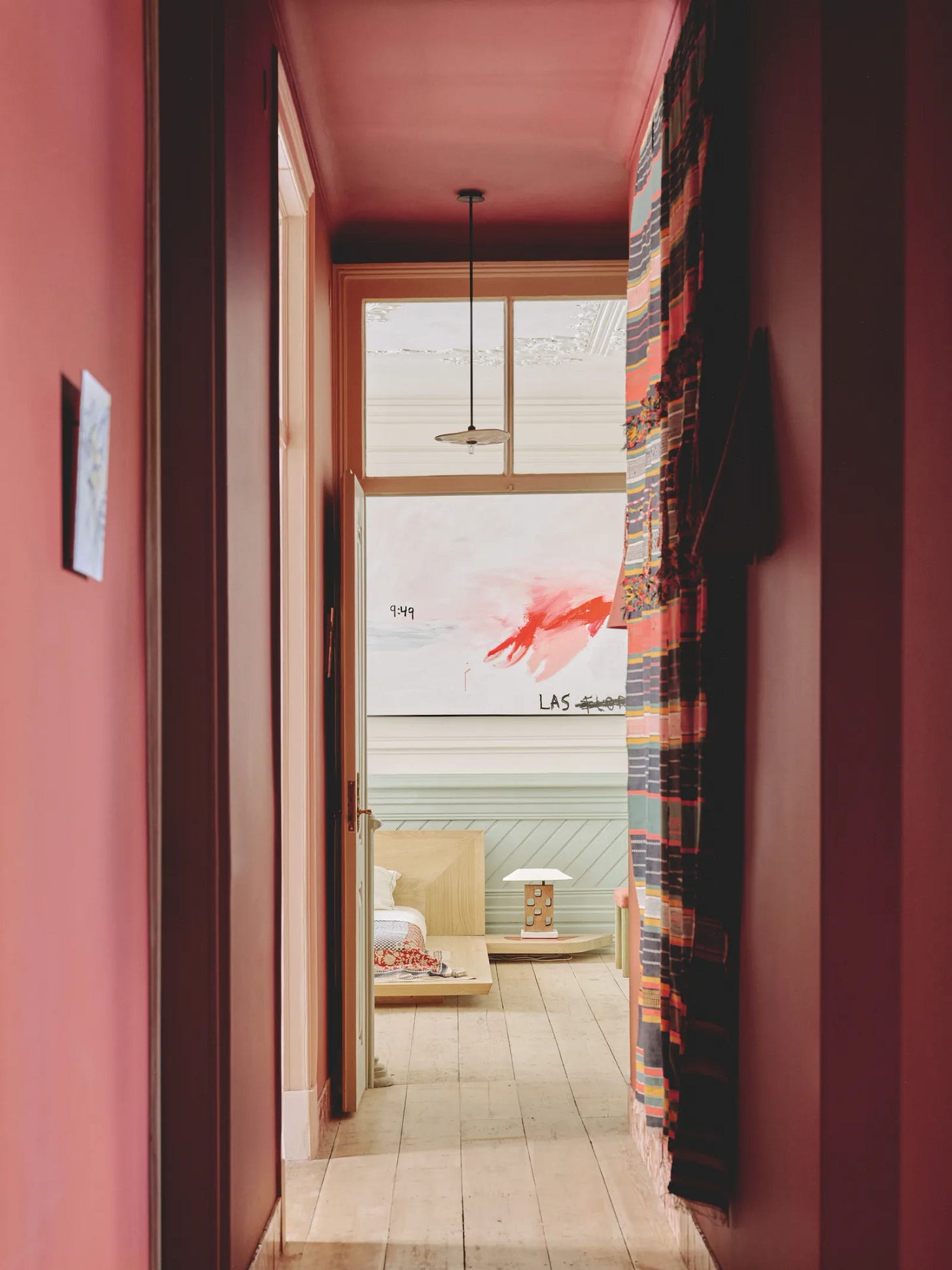 My favorite example is Garcé & Dimofski’s gallery home in Lisbon, where they painted the hallway a deep brownish-red that subtly reflects into the other rooms. I love the idea of stepping into the house and being greeted by this cozy, warm space, and I hope to replicate it one day.